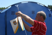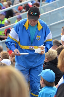 ![]() Juhlassa palkitut seuratyöntekijät (kuvasta puuttuvat Tiina Tainio ja Jouni Huila) | ![]() Jussi juhlapuhujana EKU:n juhlassa.Taustalla Kalevi ja Ensio |