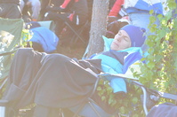 Jukolaveljekset levänneinä kisakatsomossa Hannan kanssa